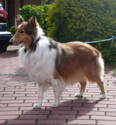 Collie Amy kam zum bürsten, kürzen der Hosen (sie waren doppelt so lang) und zum „korrigieren“ der Form. |