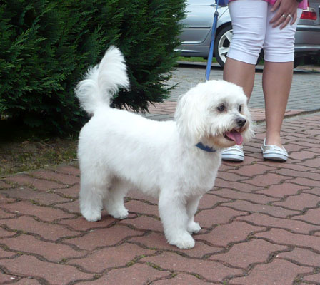 Malteser Rüde Tapsi sollte einen „Sommerschnitt“ bekommen, der aber nicht zu kurz sein sollte. Die Rute sollte etwas länger bleiben und die Augen sollten schön frei geschnitten werden. |