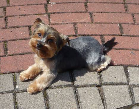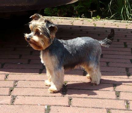 Mini– Yorkshire Terrier Jule wurde gewaschen, gefönt, teils geschoren und teils modelliert. |