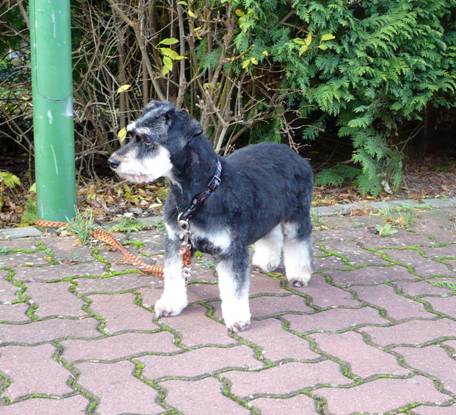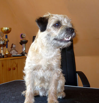 Somit wird er recht scharf wie ein Terrier frisiert. |