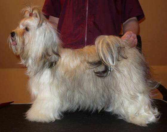 Havaneser Finya wurde für die Ausstellung vorbereitet, auf der sie am nächsten Tag den ersten Platz in großer Konkurrenz gewann!!! |