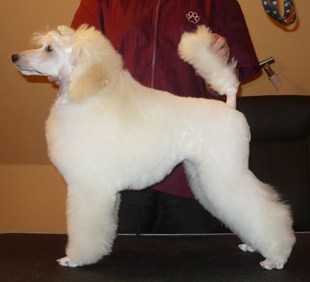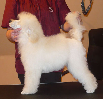Showfrisieren auch bei der weißen Kleinpudelhündin Beverly: |