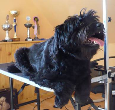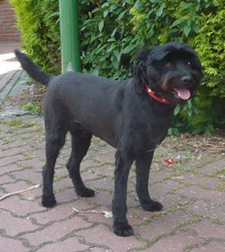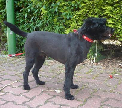 Pudel– Mix Boomer bekam ein komplettes Umstyling. Er geht nun als „Schnauzer“. Der Rest sollte ausdrücklich ganz kurz geschoren werden. |