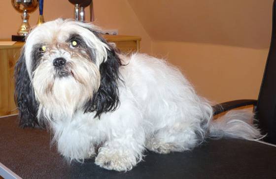 Shih Tzu– Pudel Mischling Daphne wurde gewaschen, gefönt, entfilzt, teils geschoren und teils geschnitten. |