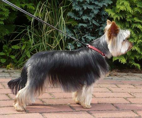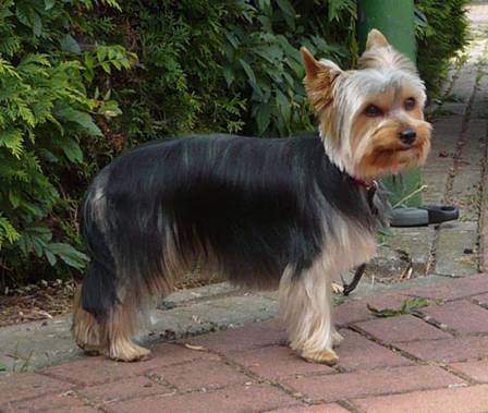 Yorkshire Terrier Püppy sollte ihr langes Fell behalten. Es wurden nur die Konturen geschnitten. |