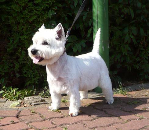 West Highland White Terrier Tobi wurde gewaschen und auf Wunsch geschoren. Er sollte ausdrücklich ganz kurz und pflegeleicht frisiert werden. |