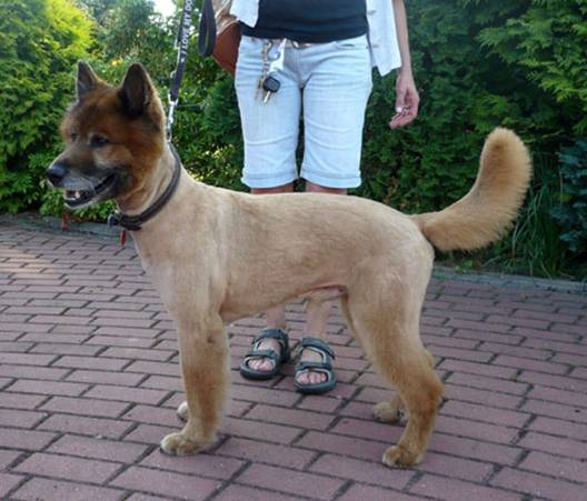 Eurasier– Schäferhund– Mischling Balu kam aufgrund seiner Schwimmleidenschaft im Sommer zum abscheren. |